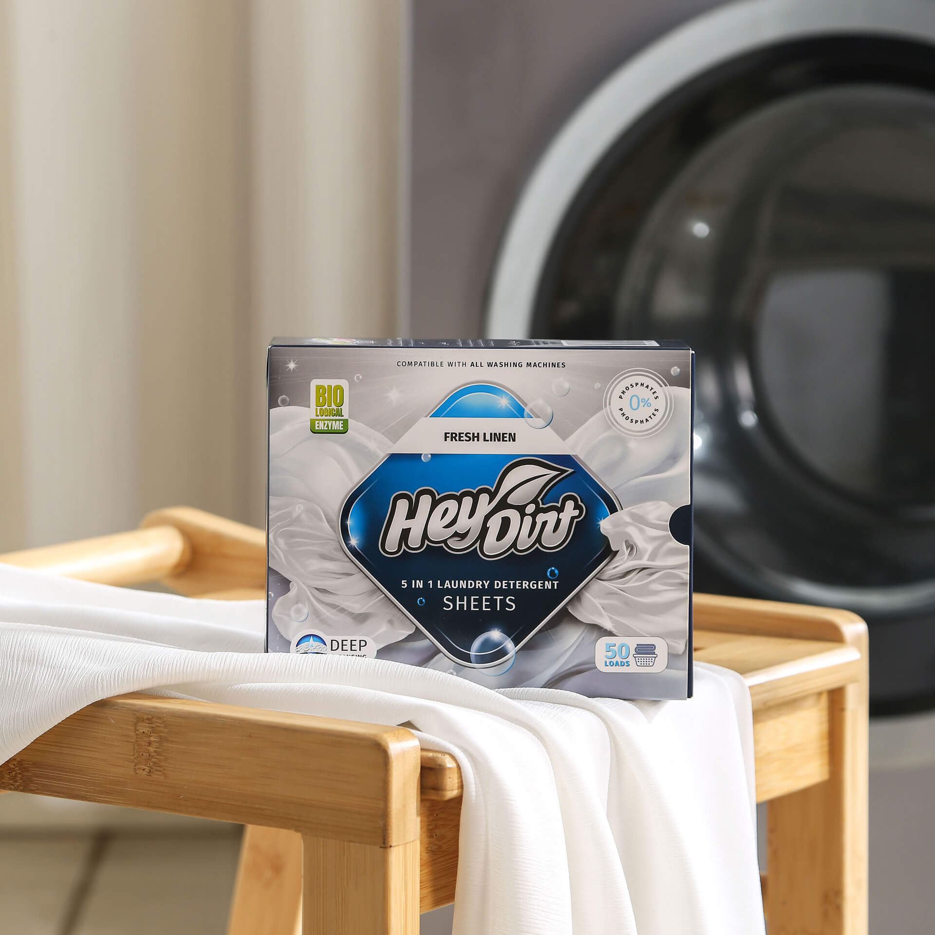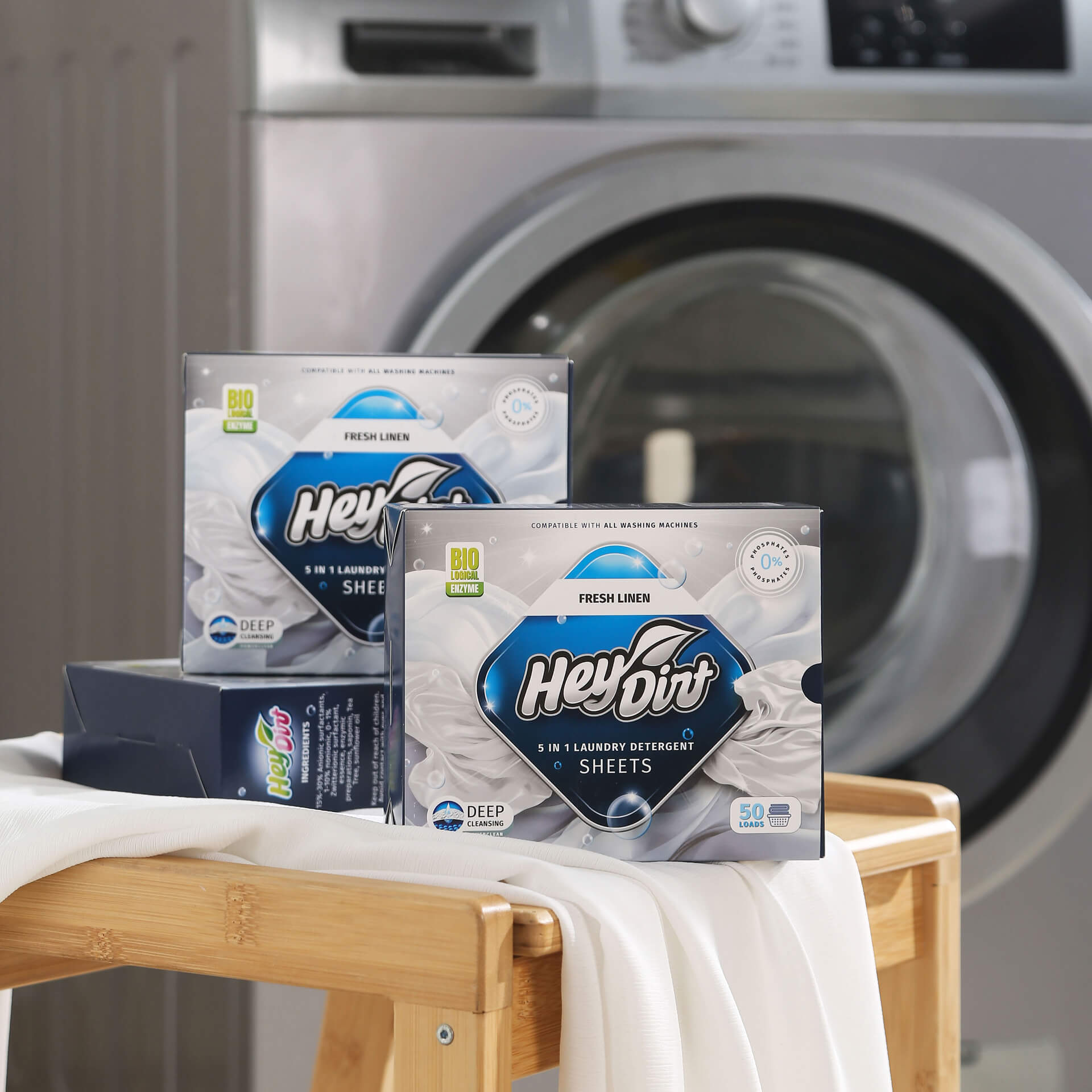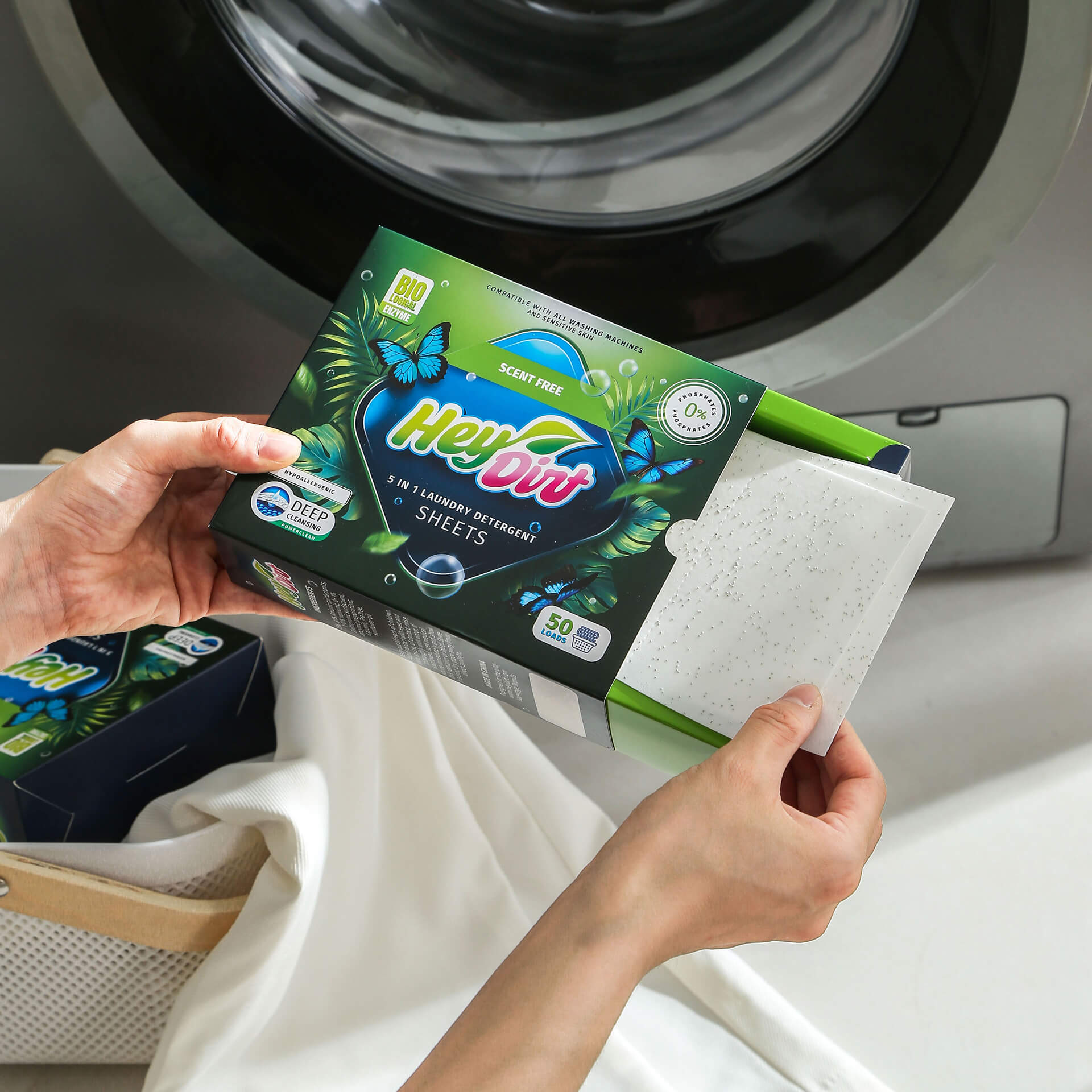 Step into the future with Hey Dirt, a leader in next-generation cleaning solutions. While traditional detergents fill our homes with bulky plastic bottles, our innovative detergent sheets present a cleaner, smarter alternative. Completely dissolvable, they leave no residue and no waste—not a trace. When you choose Hey Dirt, you’re not just cleaning your clothes; you’re cleaning up our world, one wash at a time.