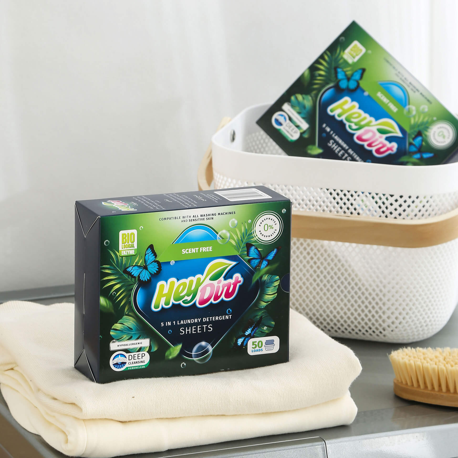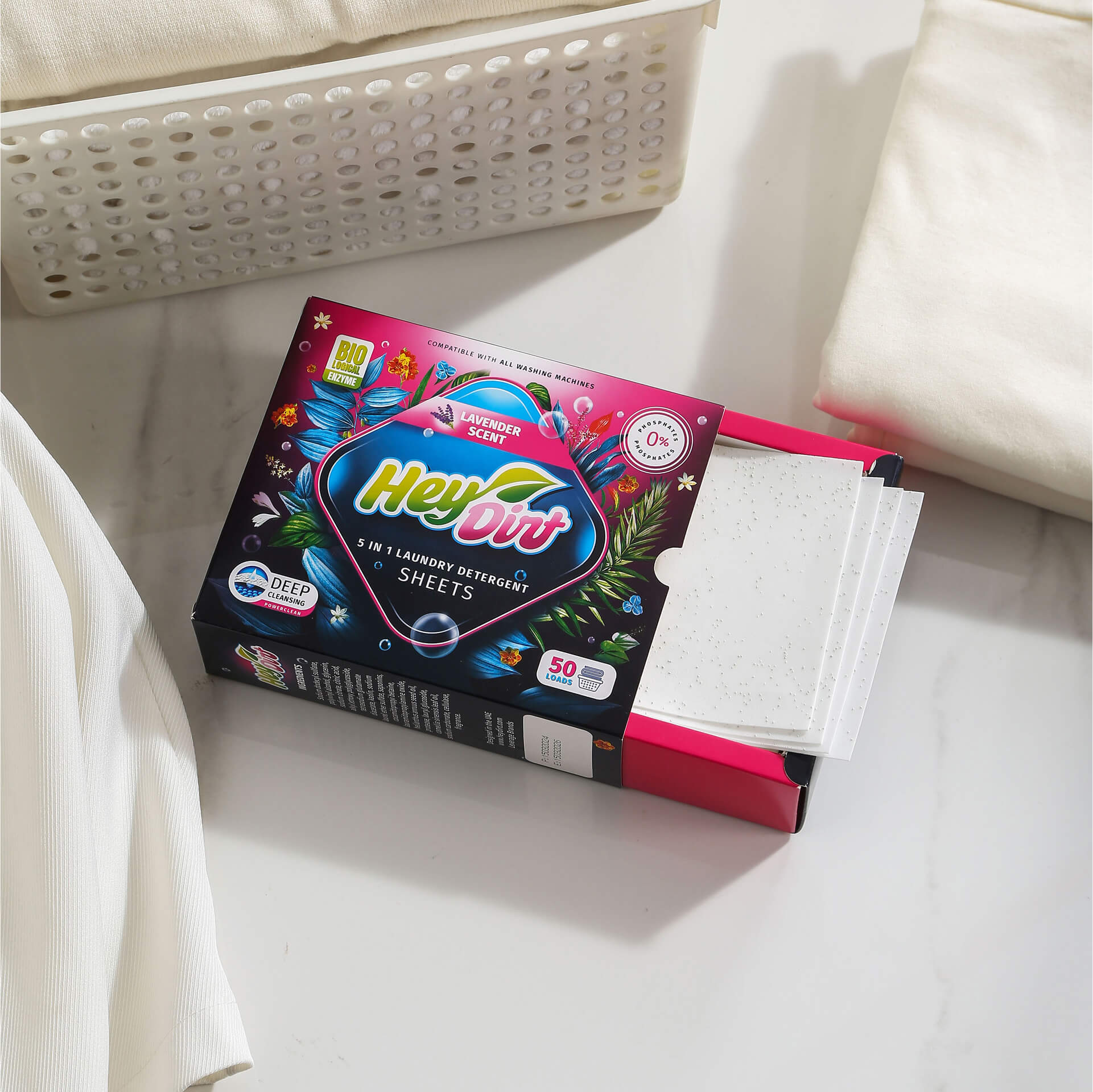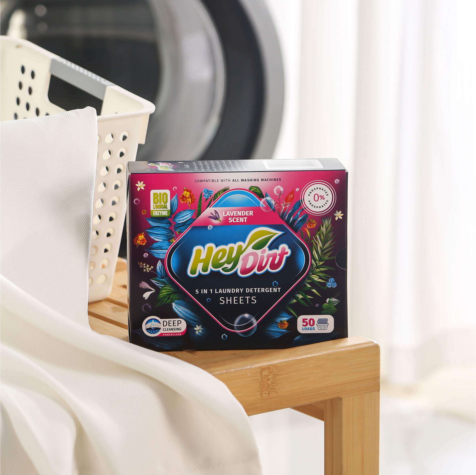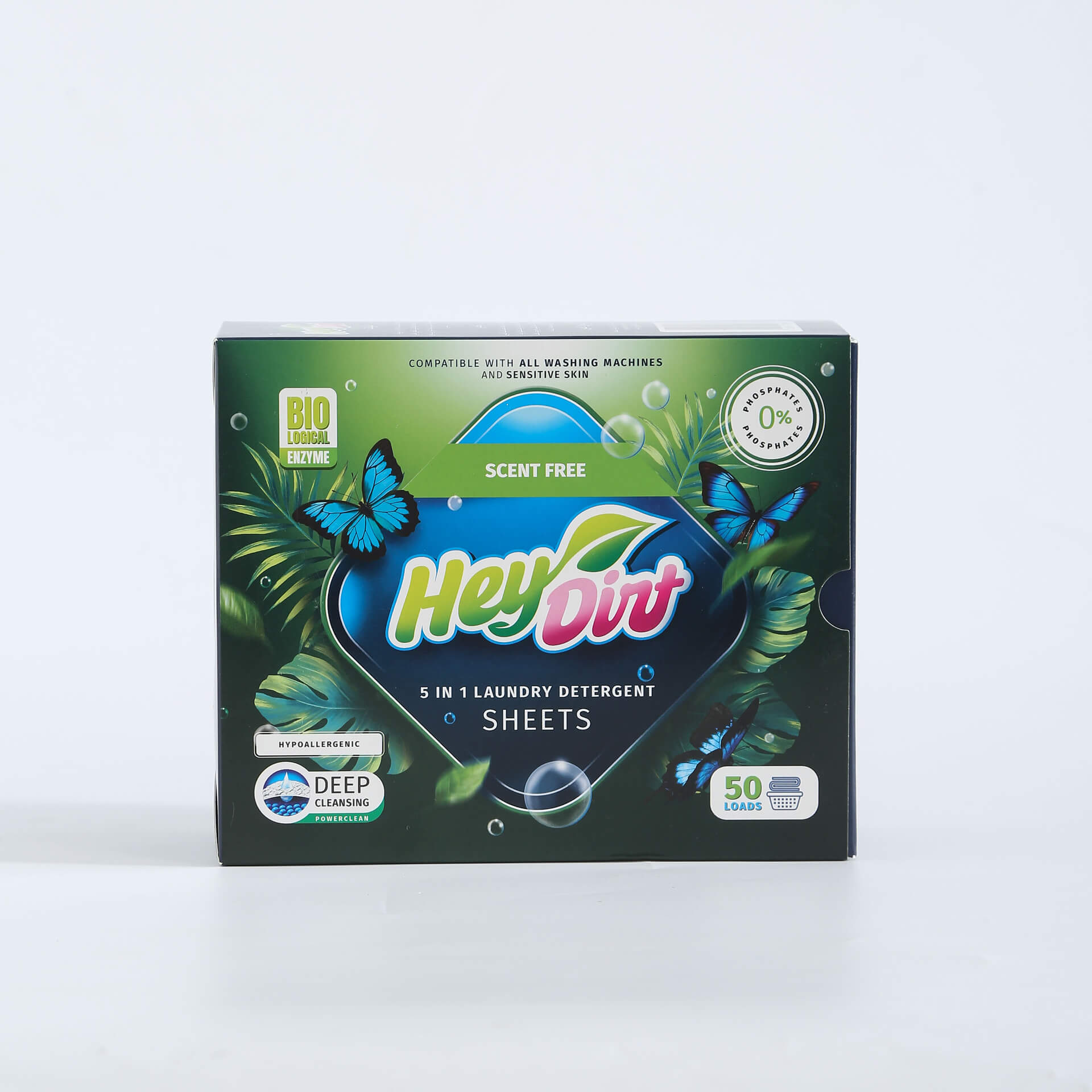 Step into the future with Hey Dirt, a leader in next-generation cleaning solutions. While traditional detergents fill our homes with bulky plastic bottles, our innovative detergent sheets present a cleaner, smarter alternative. Completely dissolvable, they leave no residue and no waste—not a trace. When you choose Hey Dirt, you’re not just cleaning your clothes; you’re cleaning up our world, one wash at a time.